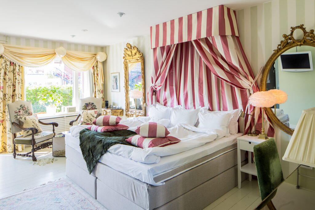Kom in i min värld av vackra, roliga handplockade ting. För mig ska ett hotellrum ge en känsla av värme och välkomnande. Det här med att ¨man ska ändå bara sova där¨ är ett uttryck jag verkligen inte kan hålla med om. Själen behöver sköna, varma miljöer för en god natts sömn. Här innebär det fluffiga duntäcken och dunkuddar, tjocka lyxiga frottéhanddukar att torka sig med, badkar i den mån det får plats och mycket mycket mer. Musik är viktigt så högtalare på alla rum är självklart på Bomans.