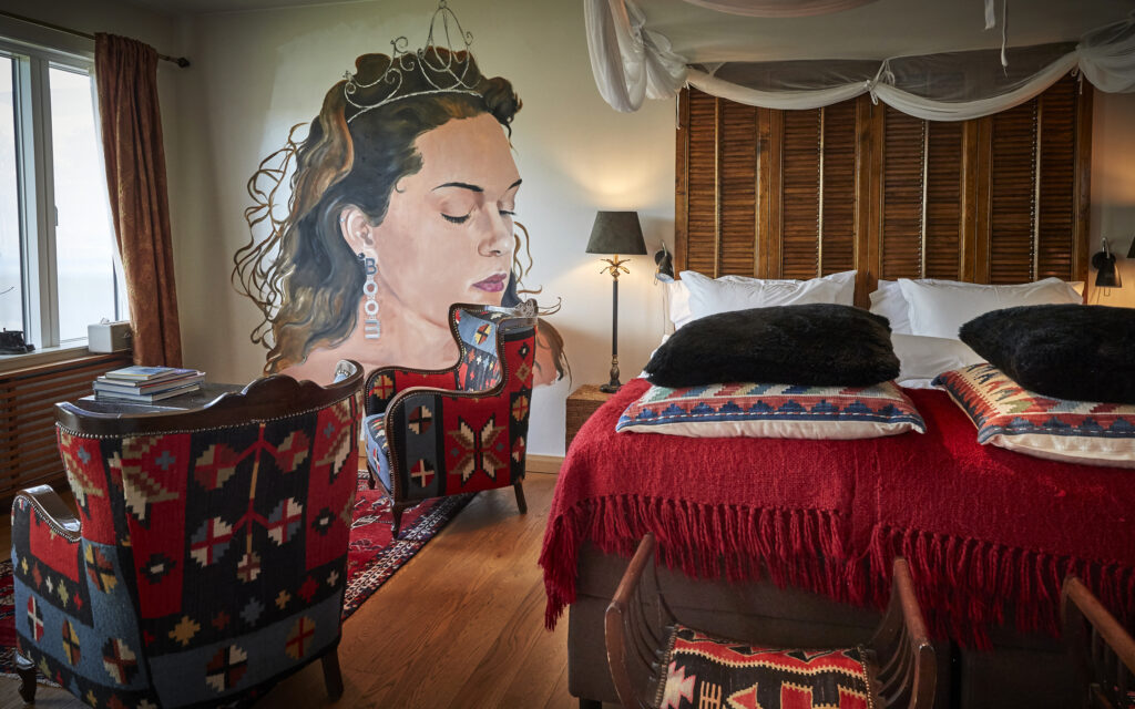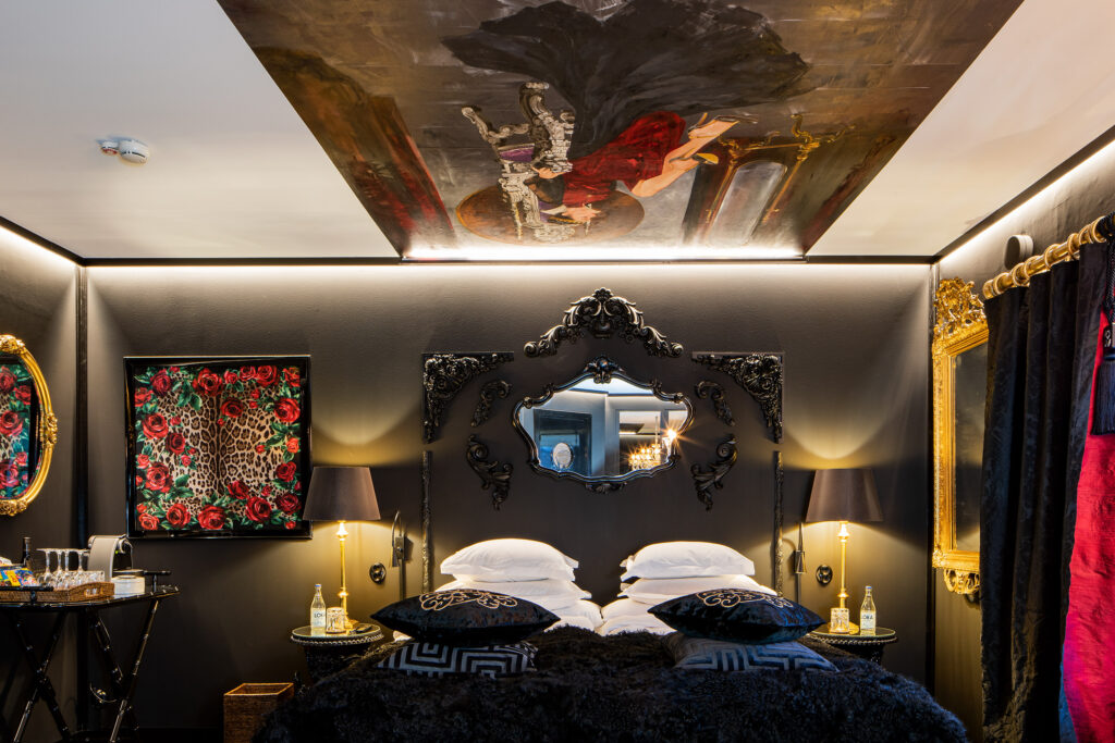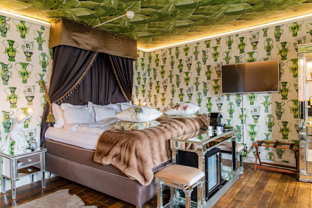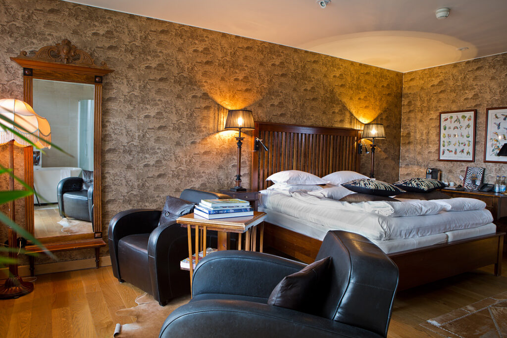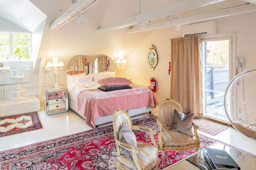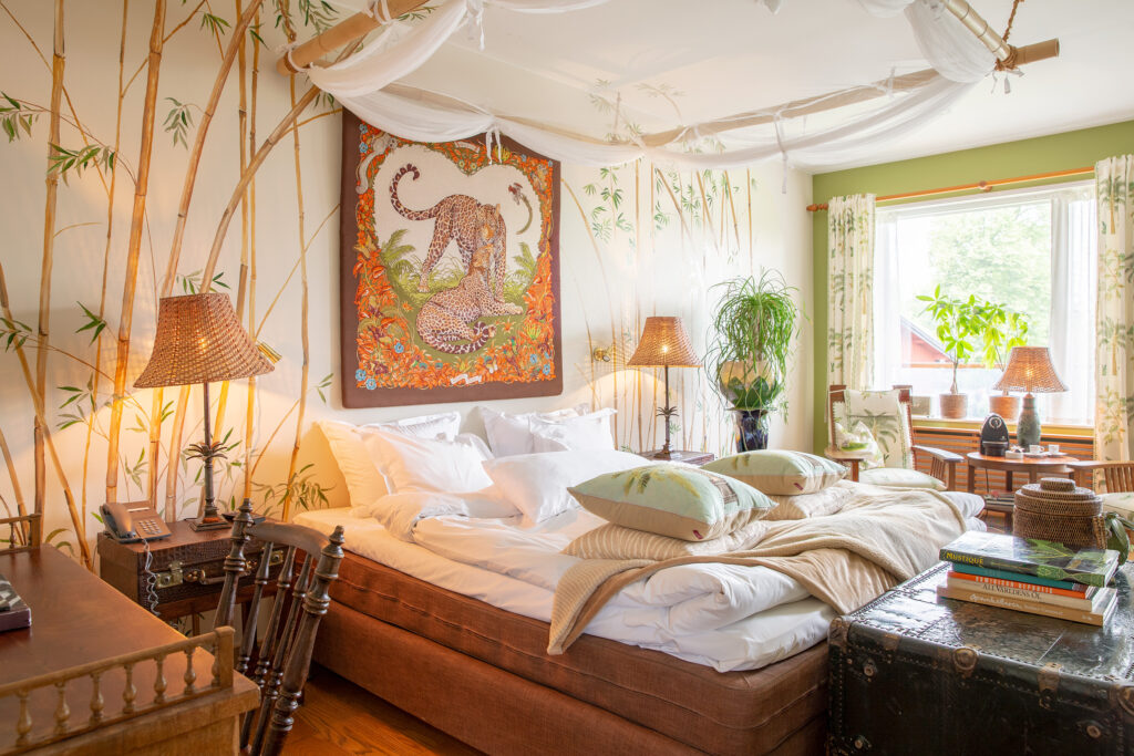 Jag älskar att skapa känslor och önskar att alla Bomans gäster på ett eller annat sätt påverkas och reagerar på miljön, inredningen och den eklektiska stilblandningen. Det går alltid en röd tråd genom varje rum, ibland är den till och med orange, som i Hermèsrummet.