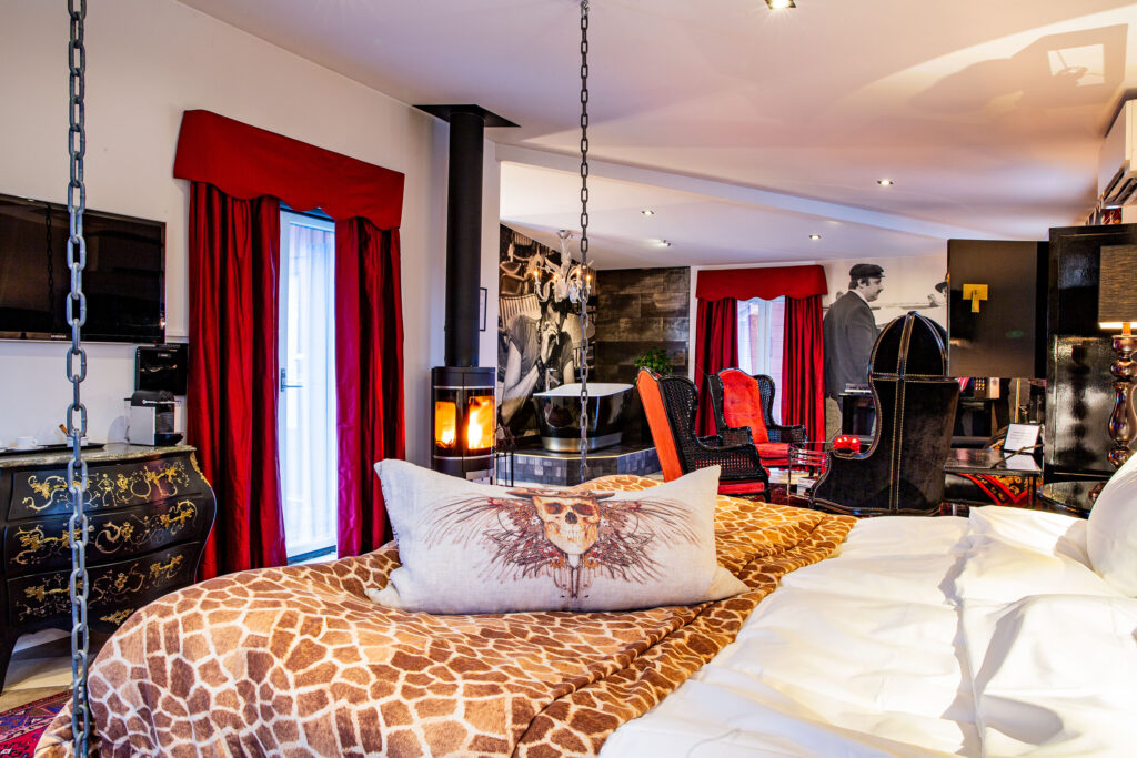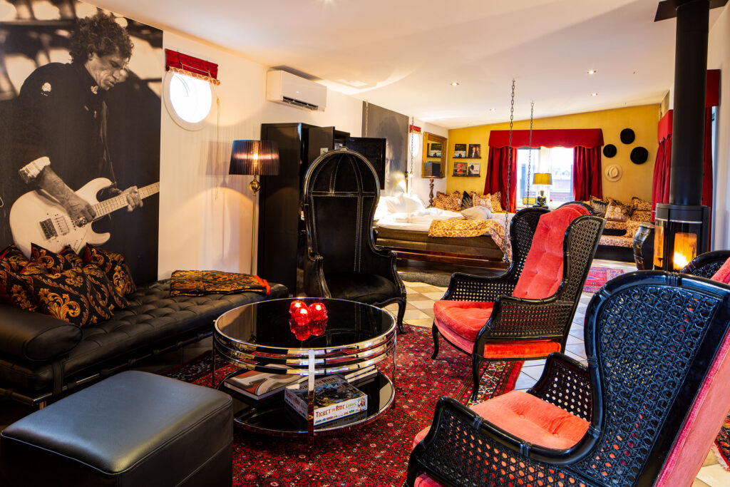 Glimmer Twin är en hyllning till en av mina stora musikhjältar, Keith Richards. Det finns en vinylspelare och Rolling Stones samlade musikskatt att lyssna till. Inspirationen till inredningen kommer från hans eget hem. Till min stora glädje har han sett bilder på rummet och sagt till sin hustru Patti att han gärna vill ha en förstorad bild av sig själv ovanför deras säng!!! Ett skämt får man förmoda. Nåväl, mailet från Patti Richards står inramat på rummet och ni kan se vad hon skriver om Glimmer Twin! Gissa om jag blev glad när det kom i min inkorg!!! Det är bara att sjunka ner i en fåtölj, hälla upp en Jack Daniels (finns i minibaren) spela lite klassisk rock och njuuuuta.