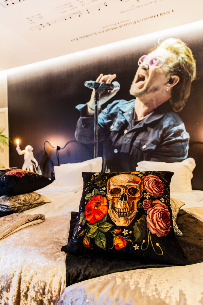 Bono i U2 har under många år varit en stor idol och förebild för mig. Dels älskar jag deras musik och här sitter låttexten och noterna till min favoritlåt ¨I still haven’t found what I’m looking for¨ i taket ovanför sängen. För många år sedan blev Bono adlad och hans fantasirika titel är ¨Knight Commander Of The Most Excellent Order Of The British Empire¨! Pust. Låter som en Jediriddare ur Star wars ungefär. Ett fantastiskt rum för en fantastisk person helt enkelt!